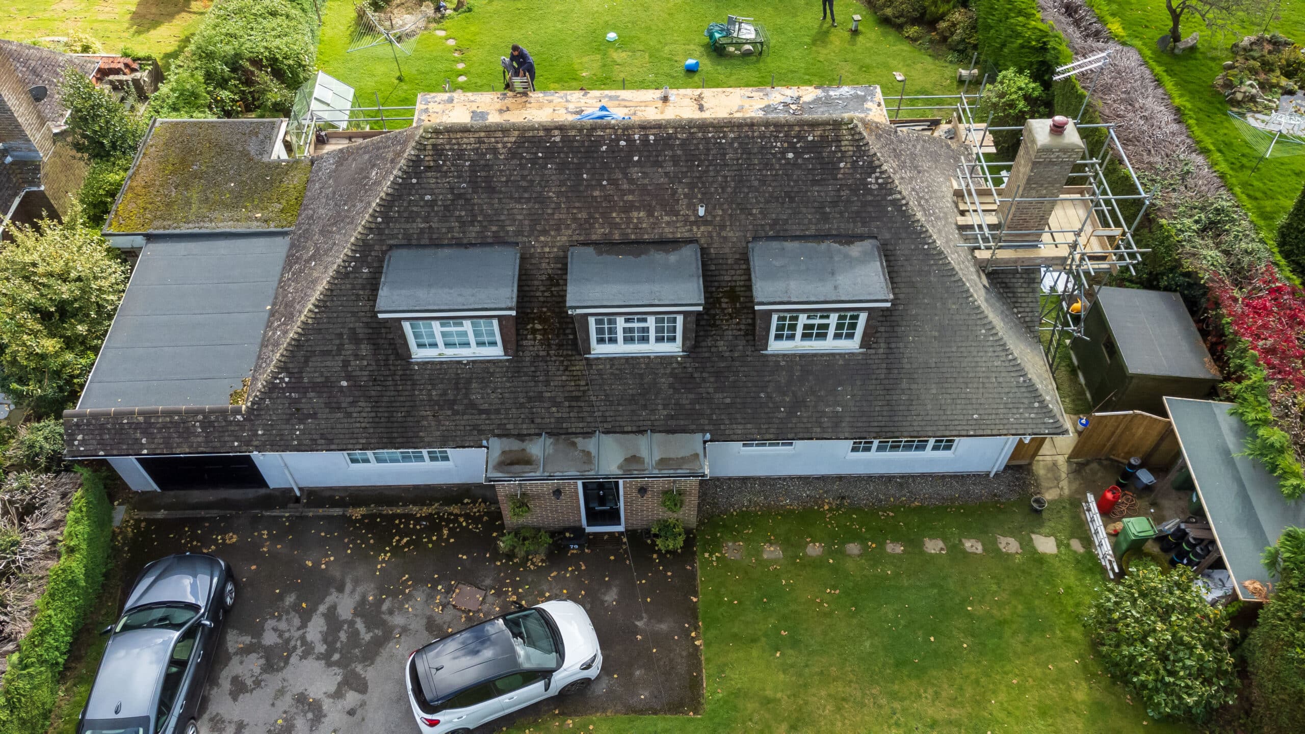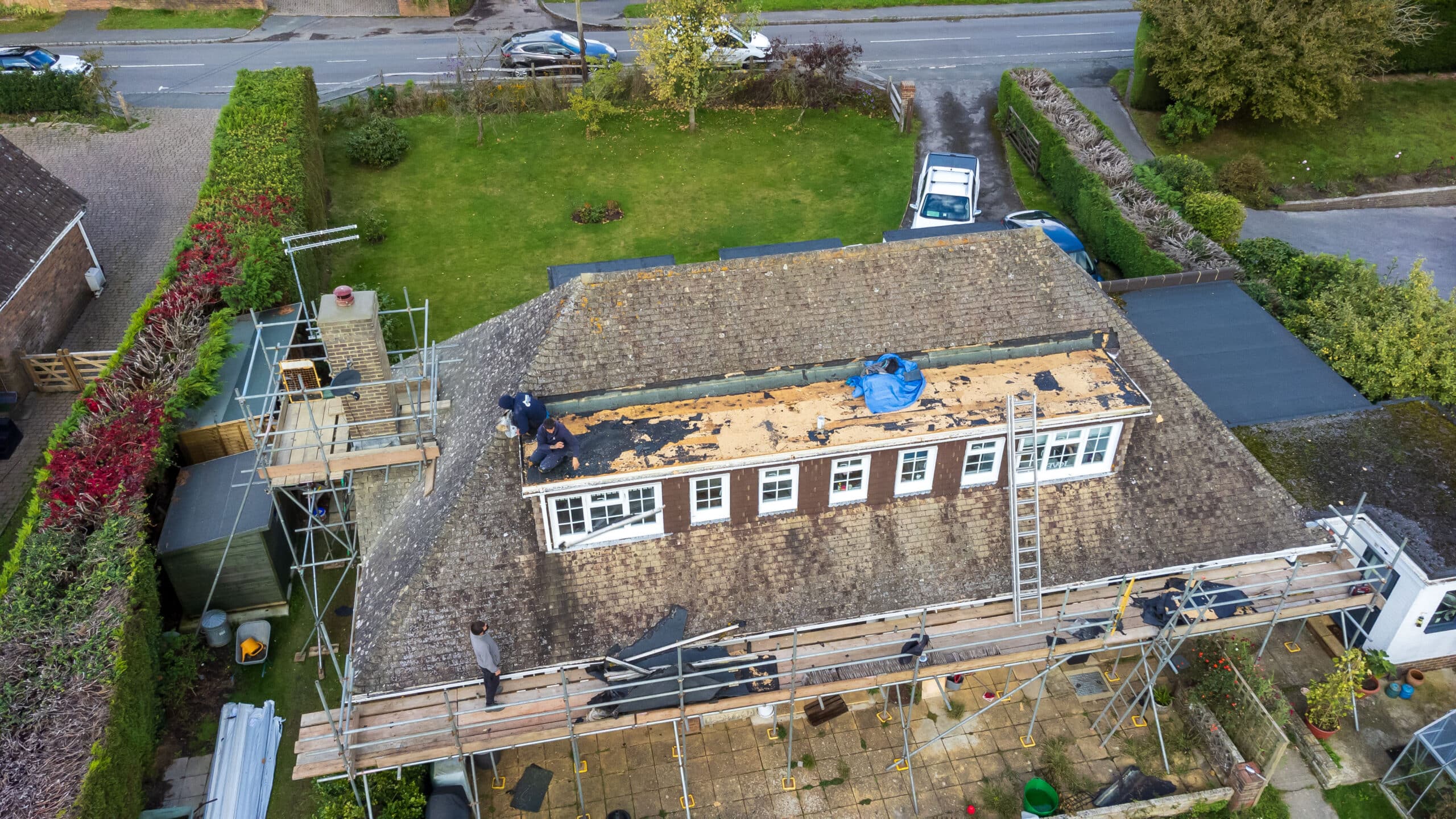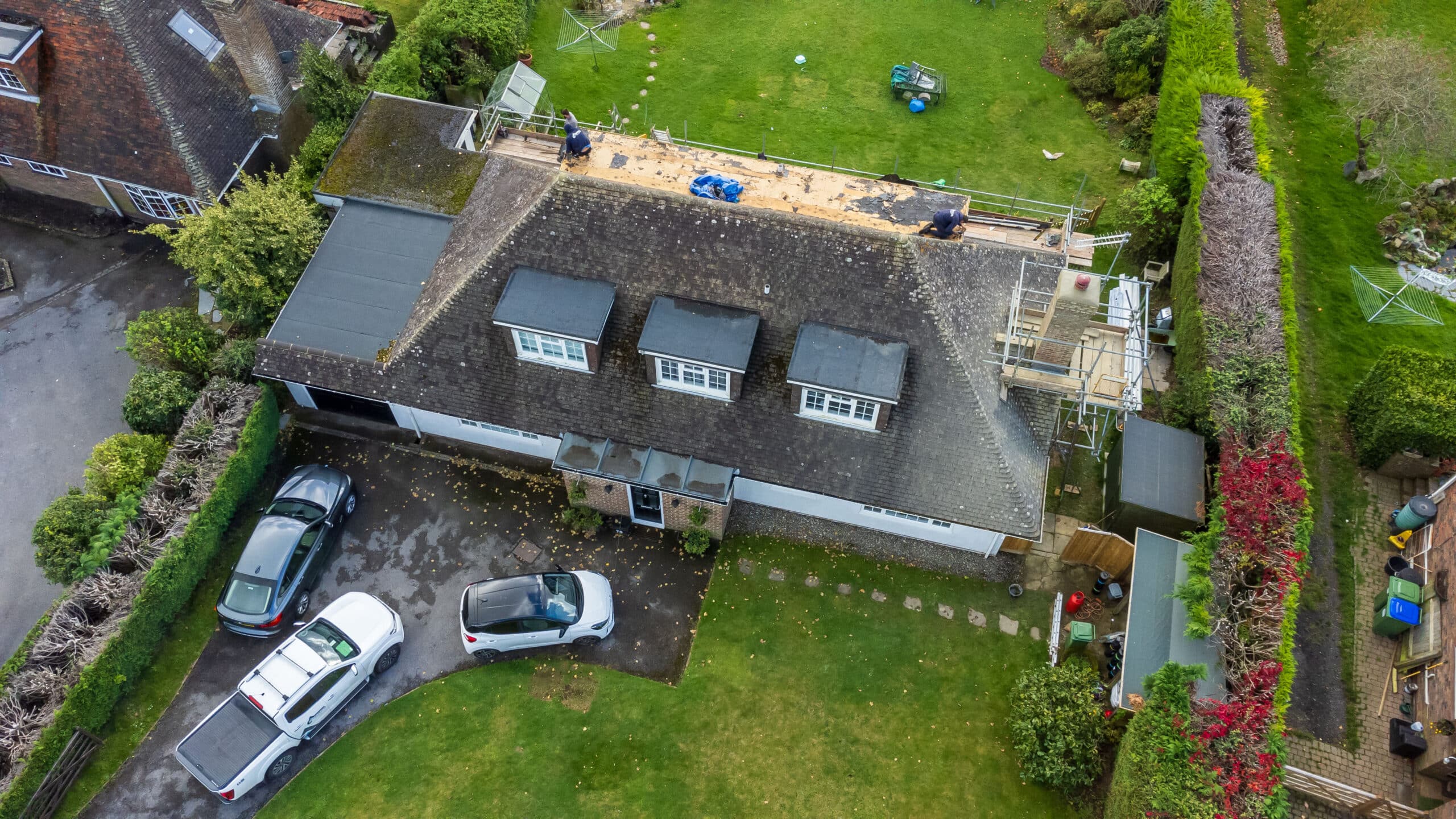 We’re underway with another fantastic project in Newick! Here, the team were stripping the old and making way for the new on the rear flat roof. We are also replacing the front GRP porch with a sleek flat roof. To enhance durability, we will be covering all the timber fascia with PVC capping, and also replacing the guttering throughout the property.