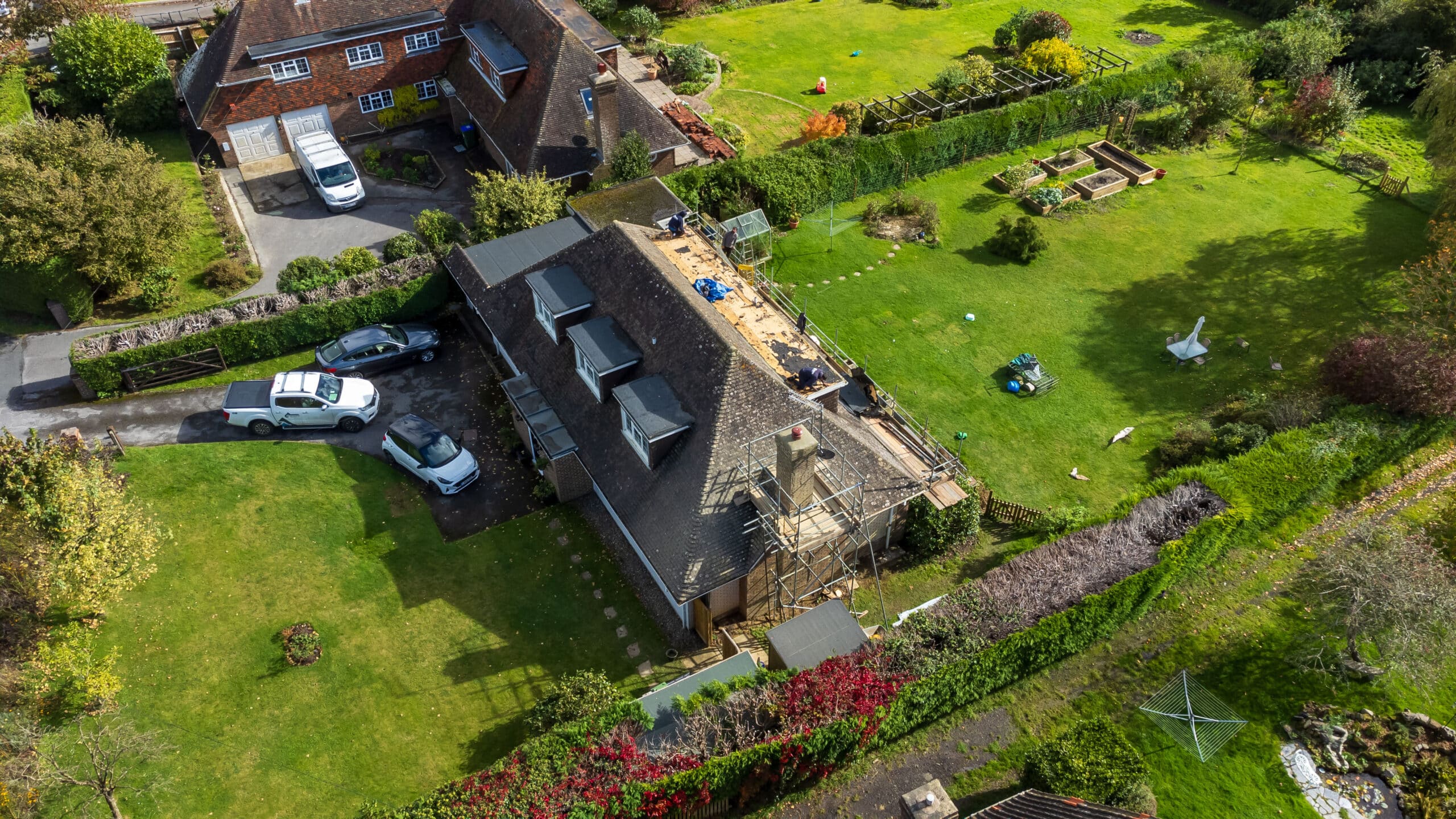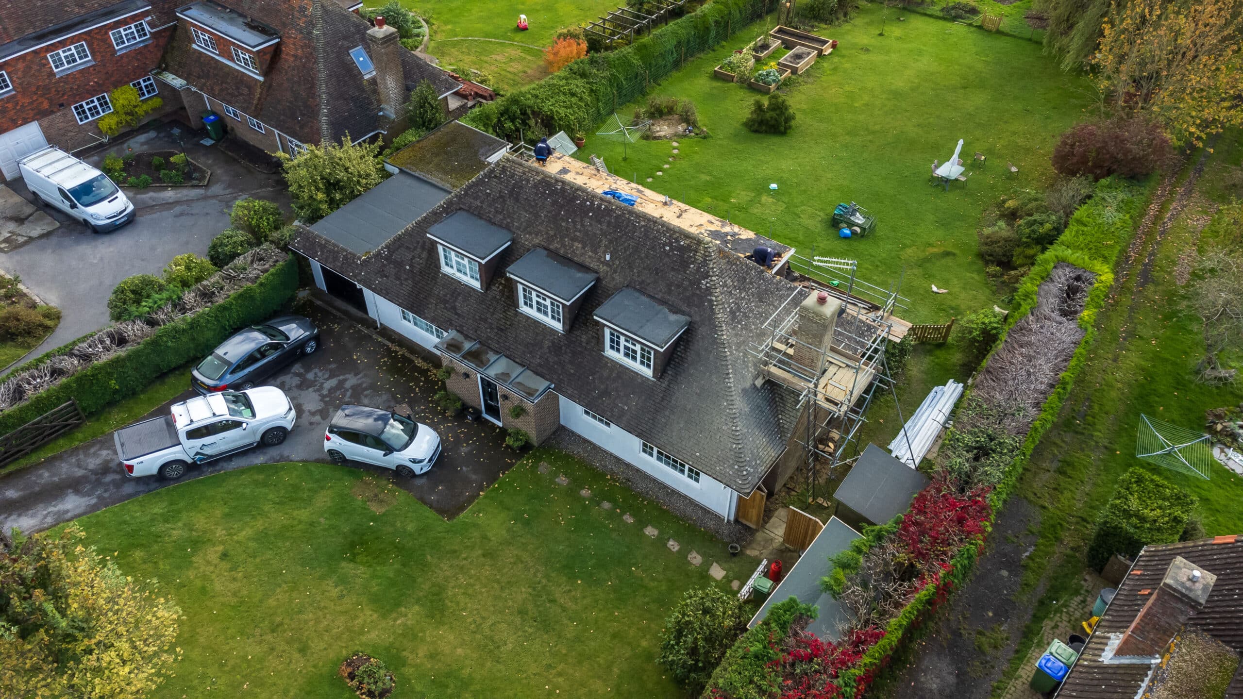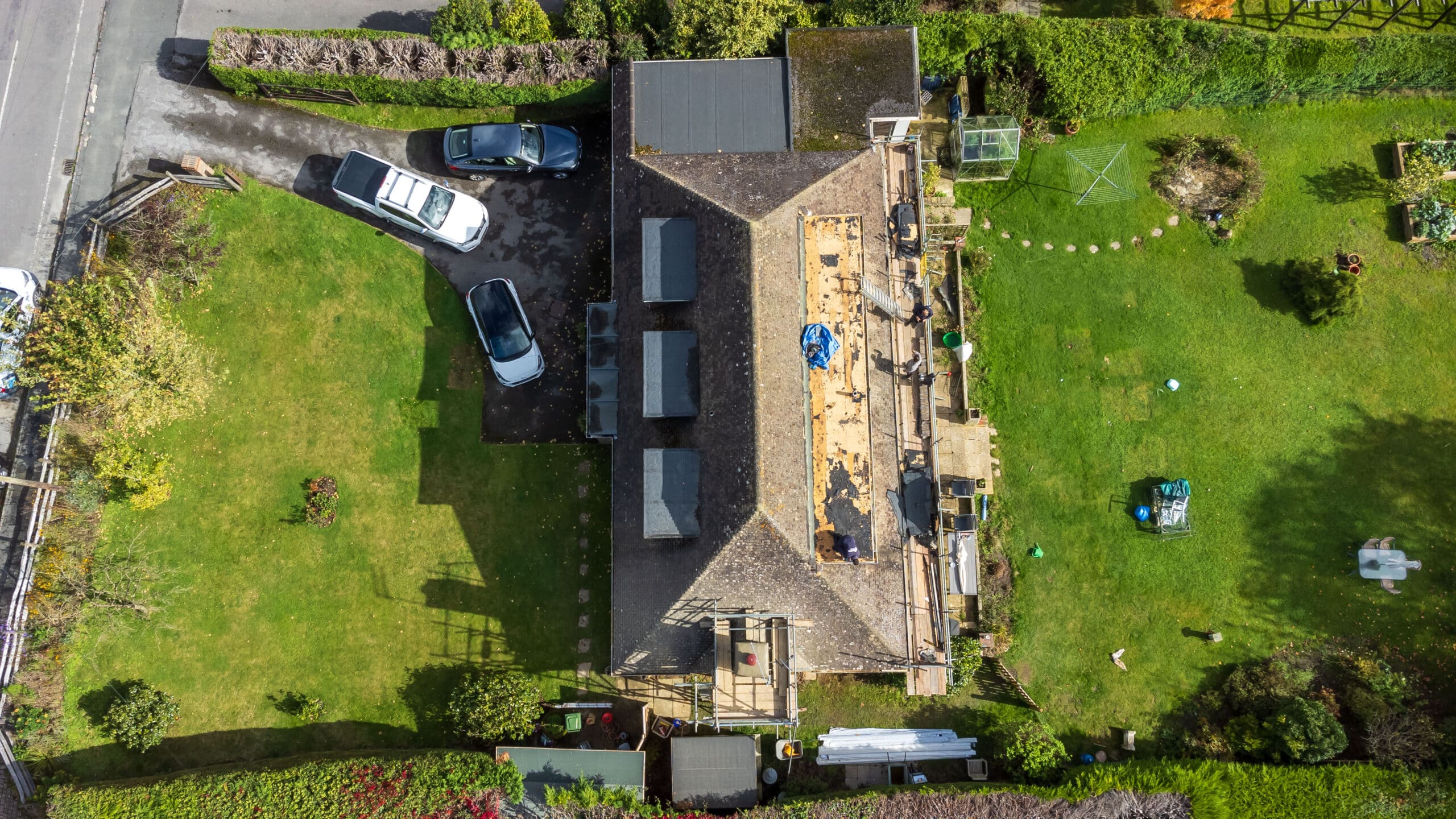 We’re underway with another fantastic project in Newick! Here, the team were stripping the old and making way for the new on the rear flat roof. We are also replacing the front GRP porch with a sleek flat roof. To enhance durability, we will be covering all the timber fascia with PVC capping, and also replacing the guttering throughout the property.