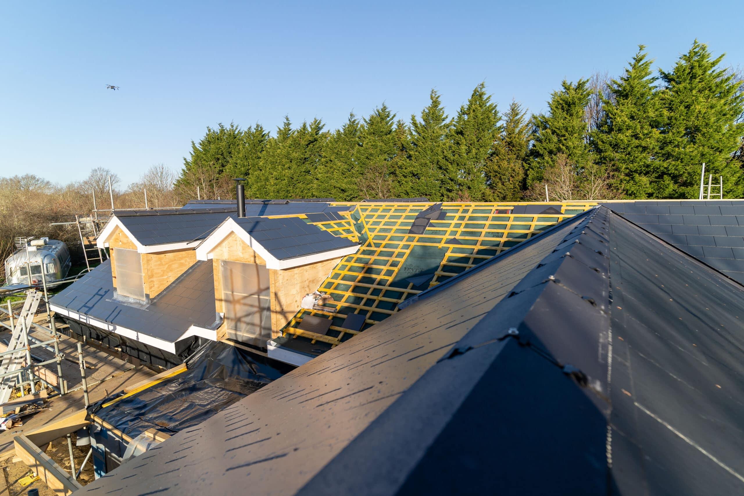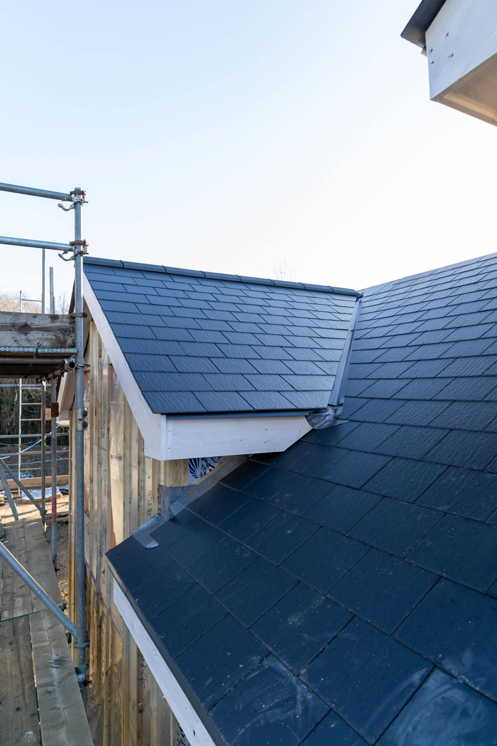 In a collaborative effort with JHE Construction, Cornerstone Roofing completed a standout roofing project in Ditchling, showcasing our expertise in delivering high-quality, durable roofing solutions. This project featured the meticulous installation of counter battens, Over Fascia Vents (OFV), and breathable membranes, alongside the use of premium Westonland slates and Redland Anthracite ridge tiles for aesthetic appeal and longevity. Adhering to NFRC-recommended specifications and incorporating custom leadwork by Sussex Lead Work, this project exemplifies Cornerstone’s commitment to excellence, blending innovative roofing techniques with the natural beauty and architectural integrity of Ditchling residences.