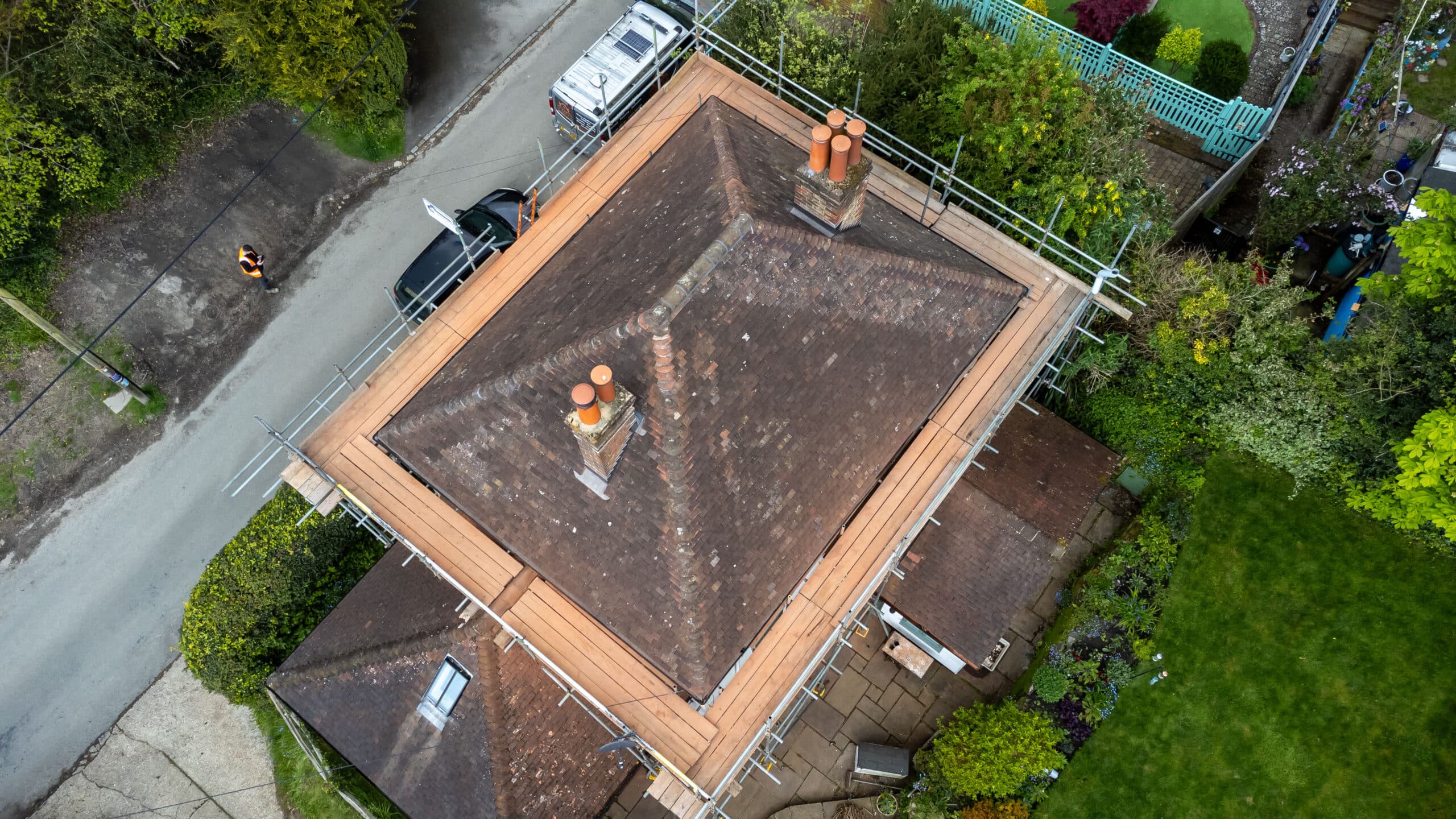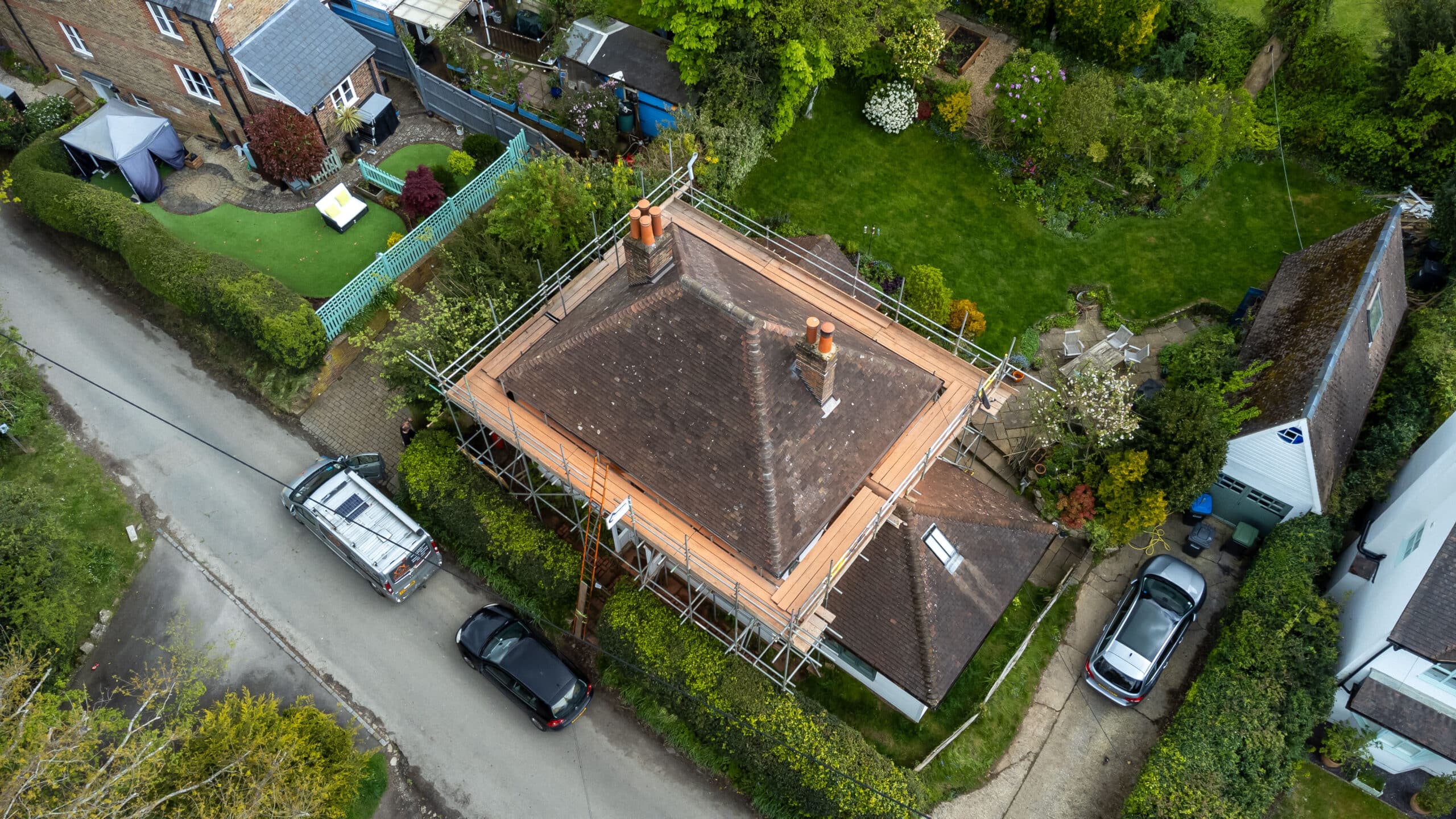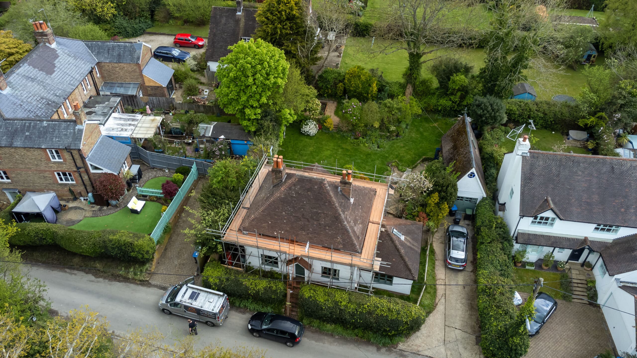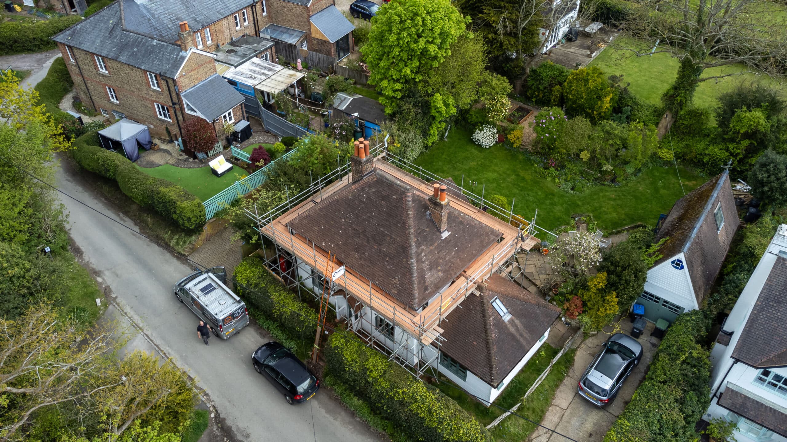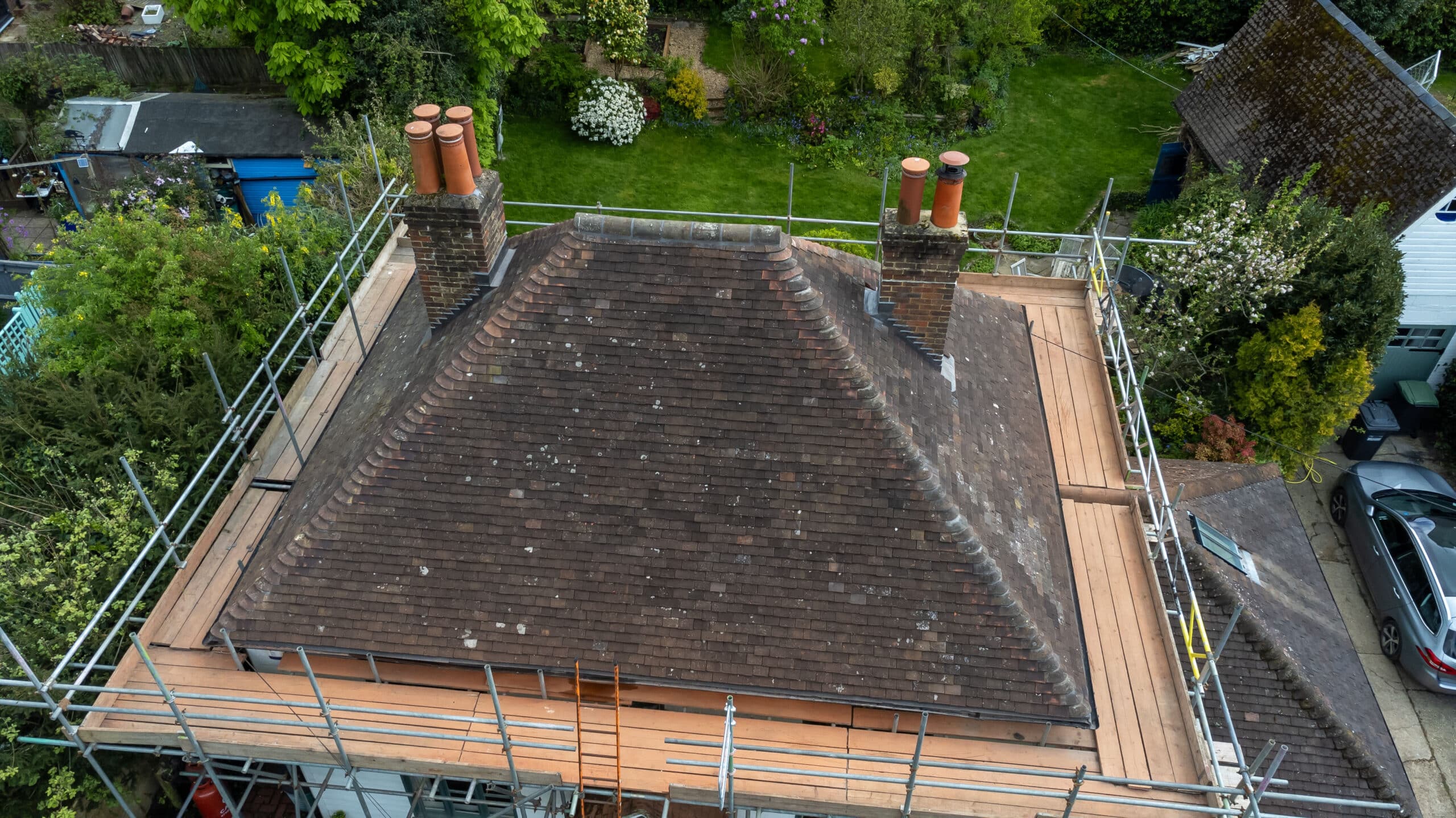 Check out our completed full re-roof project in Bolney! We’ve removed the old, laid down new felt and battens, and reused original and re-claimed clay peg tiles.